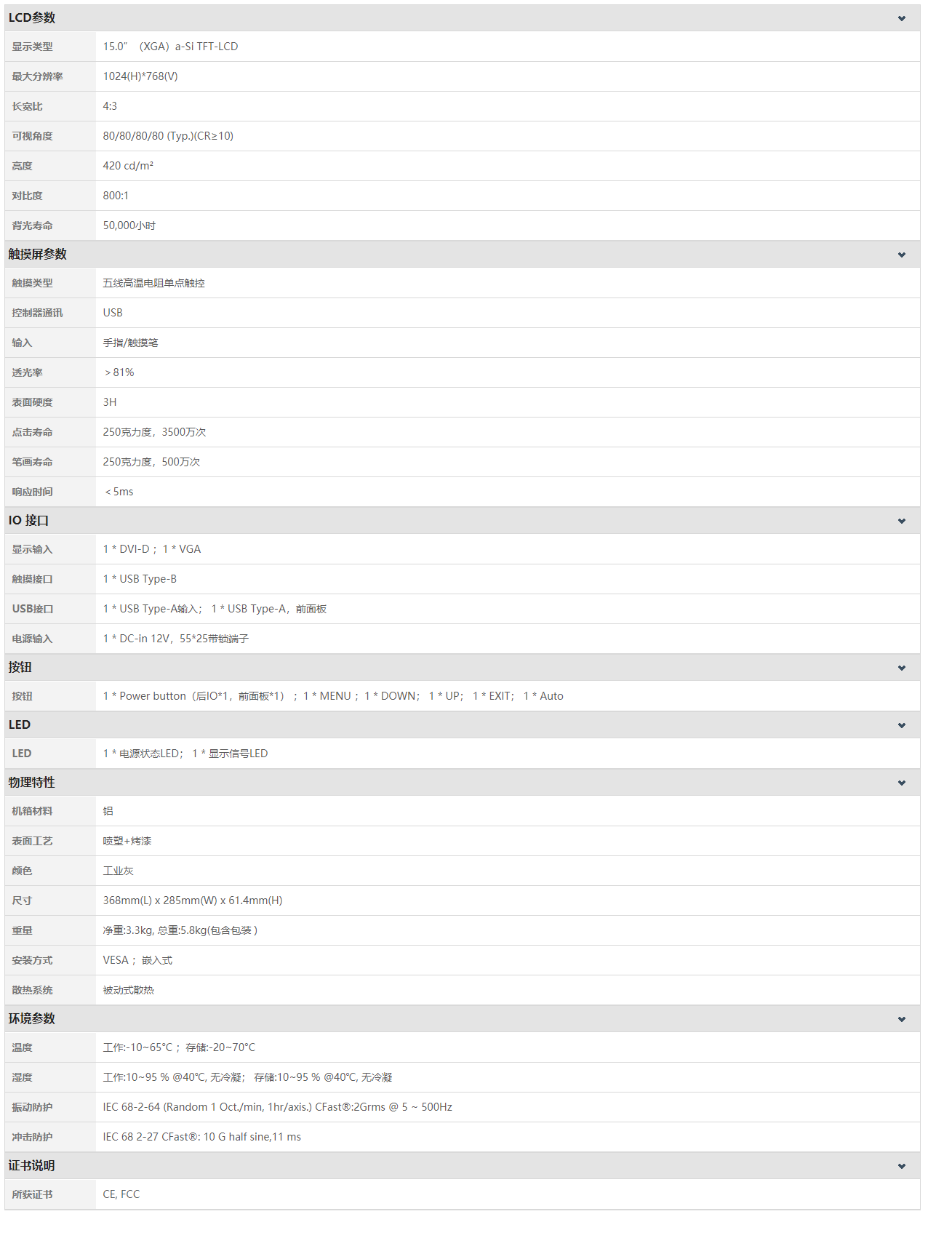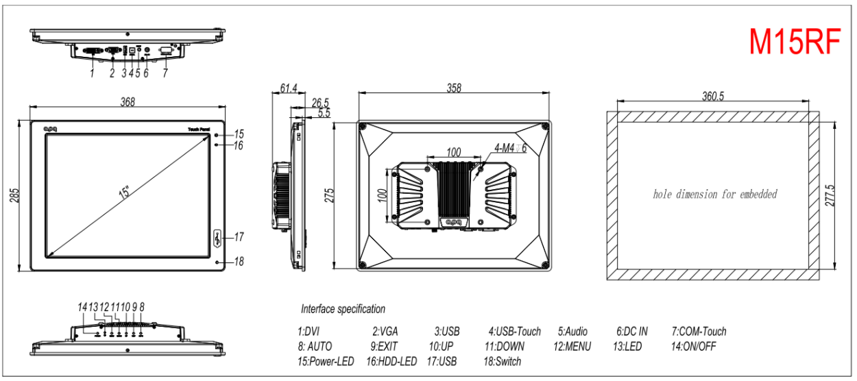 M15RF是一款15寸工業(yè)級觸摸顯示器,結(jié)合阿普奇產(chǎn)品戰(zhàn)略,由顯示面板和驅(qū)動模塊組成,整機采用全鋁合金模具壓鑄成型,具有堅固的機身和更寬的溫度適應(yīng),結(jié)合美觀的PVC前膜,使前面板達到IP65防護等級。采用高品質(zhì)LED低功耗背光液晶屏,和業(yè)界高兼容性的MSTAR顯示驅(qū)動芯片,保障了圖像的長壽命穩(wěn)定輸出。高溫五線制程的電阻式觸摸屏,人性化的前置USB和開關(guān),多種緊固連接的信號輸入及靈活的安裝方式,適用于各種嚴苛的工業(yè)應(yīng)用現(xiàn)場。