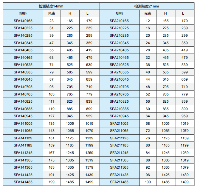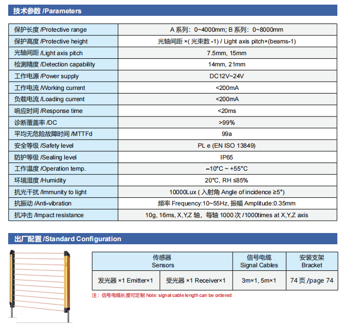 SFA/B系列無盲區(qū)安全光幕