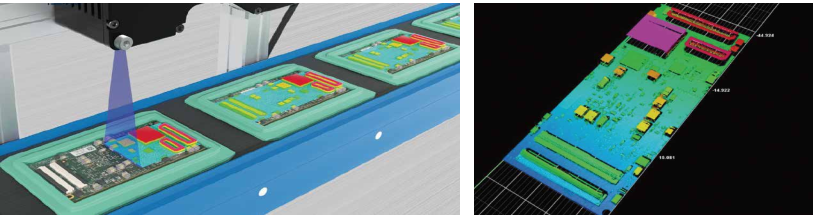 進(jìn)行PCB在線檢測(cè),生成3D點(diǎn)云數(shù)據(jù)用于復(fù)雜測(cè)量。