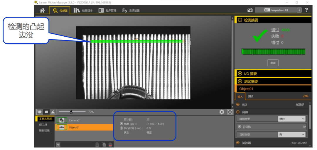 使用Object工具對凸起的邊沿進(jìn)行檢測,輸出凸起的數(shù)量。