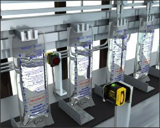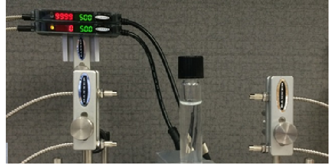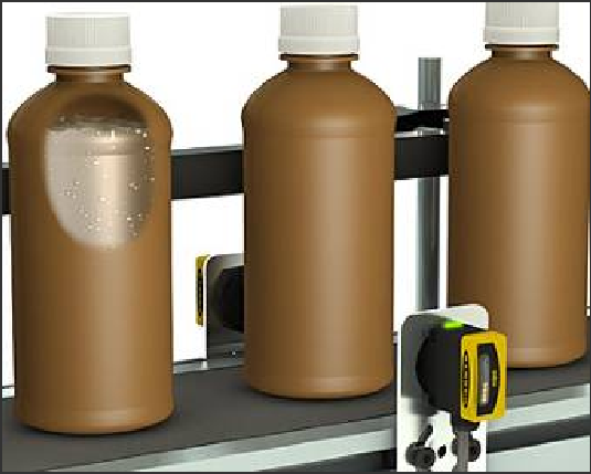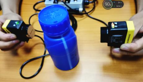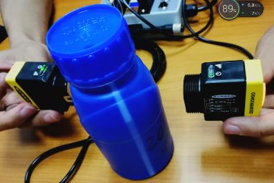 盛農(nóng)藥的瓶子是塑料瓶,肉眼看起來完全不透明。傳統(tǒng)的方案是稱重,由于瓶本身的重量有差異,很難保證精確控制。有的客戶采用視覺檢測(cè),對(duì)瓶子打背光,成本比較高。采用高能型QS30H2O能可靠檢測(cè)瓶子內(nèi)農(nóng)藥的液位,非常可靠。通過加裝光縫,實(shí)現(xiàn)液位的精確檢測(cè)。