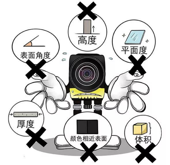以前我們所說的機器視覺,通常是指2D的視覺系統(tǒng):即通過攝像頭拍到一個平面的照片,然后通過圖像分析或比對來識別物體,能看到物體一個平面上特征,可用于缺失/存在(有無)檢測、離散對象分析圖案